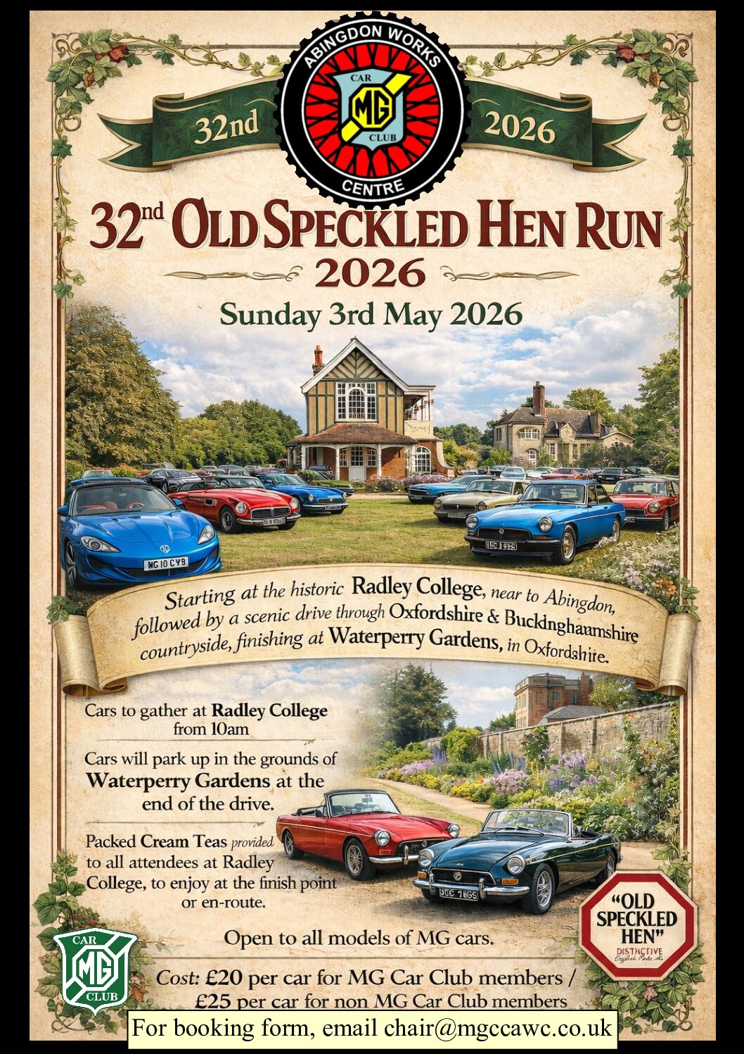 Email chair@mgccawc.co.uk for the booking form.