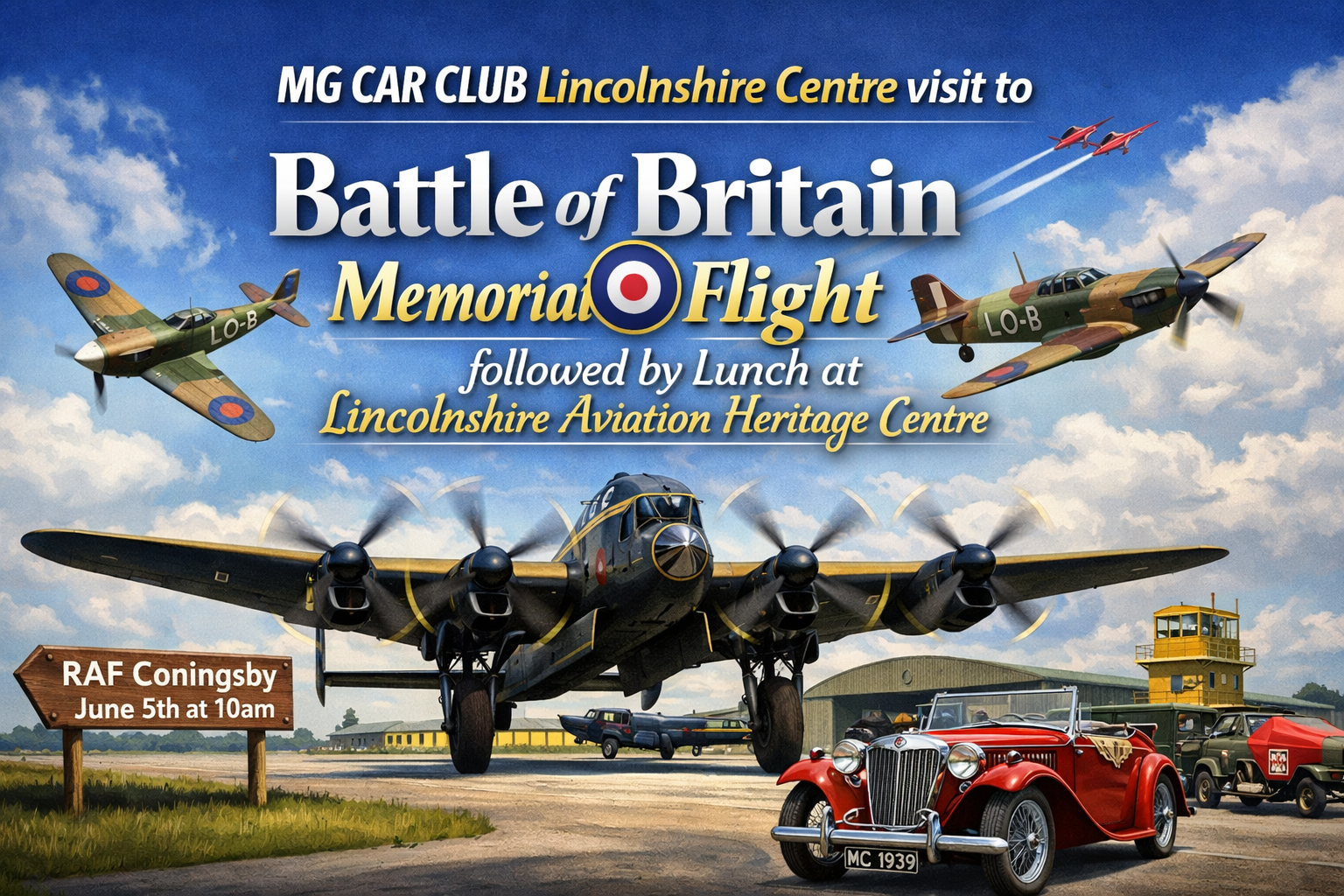 Join the MG Car Club Lincolnshire Centre on Friday 5th June 2026 at 10am for a guided tour of the BBMF hangar at Coningsby, followed by lunch at the NAAFI at Lincolnshire Aviation Heritage Centre, East Kirkby.