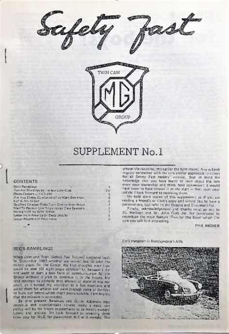 However, interestingly, the theme of asking members for contributions in Safety Fast! articles seems to be a long standing one as shown in the first Twin Cam Group ‘Supplement’ of February 1982’s Safety Fast!