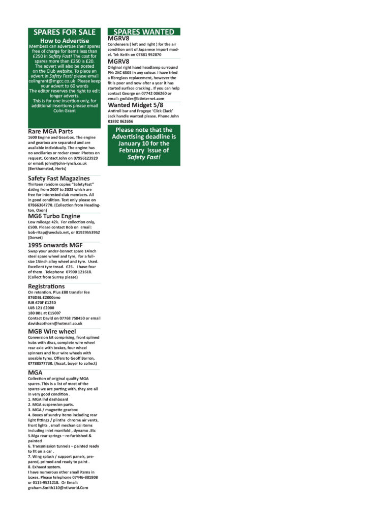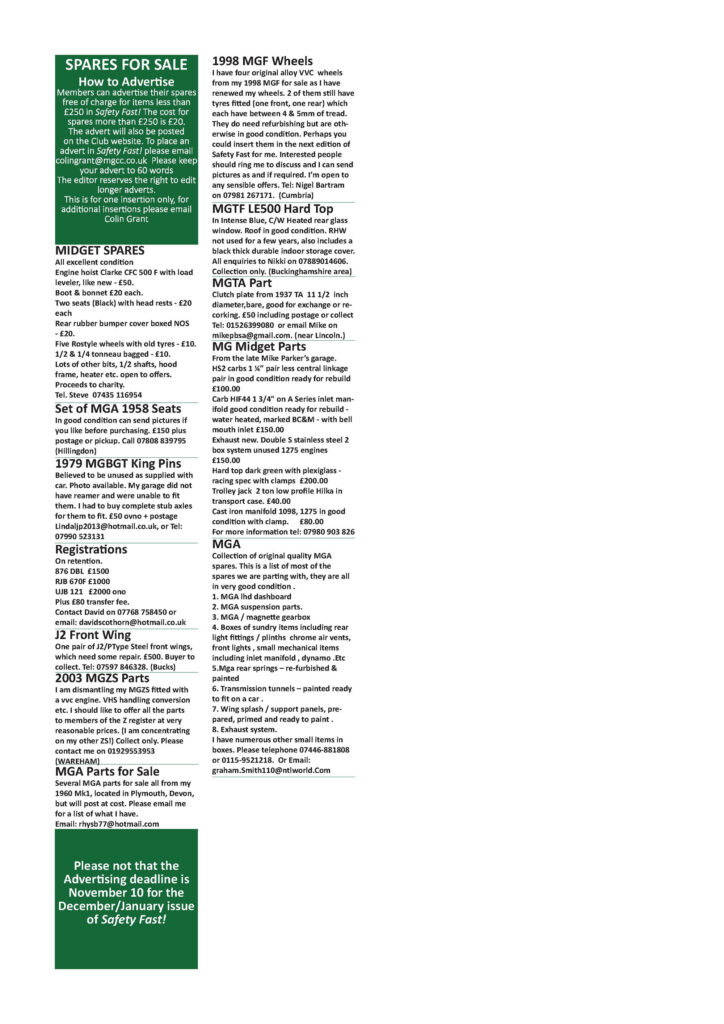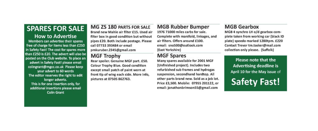 The MG parts for sale listed here are replicated from our club’s award-winning magazine Safety Fast!