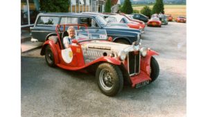 Most notably in the 1980s and early 90s were the achievements of Brian Sayers and his 1948 MG TC “EUJ 924”. Brian started racing in 1978 in the MGCC T-Type Championship, comprising circuit races, sprints and hill-climbs. Competing in Standard Class, a combination of exceptional driving skill, “will to win” and a very reliable car saw Brian quickly move up the field year on year, winning the championship outright in 1981, 1982 & 1983. Not bad for a car purchased for £25, and in the early years, driven considerable distances to and from every meeting. Following some sponsorship from ICI, and a move to Road Modified Class, with a very well-prepared engine, Brian was able to keep pace with the Full Race cars, and his sterling efforts resulted in winning the T-Type Championship again in 1991. In those years Brian held lap records at most of the race circuits, sprint and hill-climb circuits across the UK visited by the T-Type racers. Quite an amazing record.