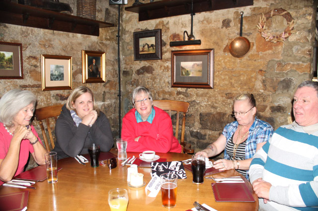 We arrived at The Highlander Inn near Belsay where the marshals strategically placed some cars at the front for viewing as people went by and the rest were parked at the rear, from where we all went in to enjoy a splendid Sunday lunch. David Hughes was the lucky winner of the prize draw and John Adamson with daughter Erica Ware scooped the generous donation of wine from the pub.